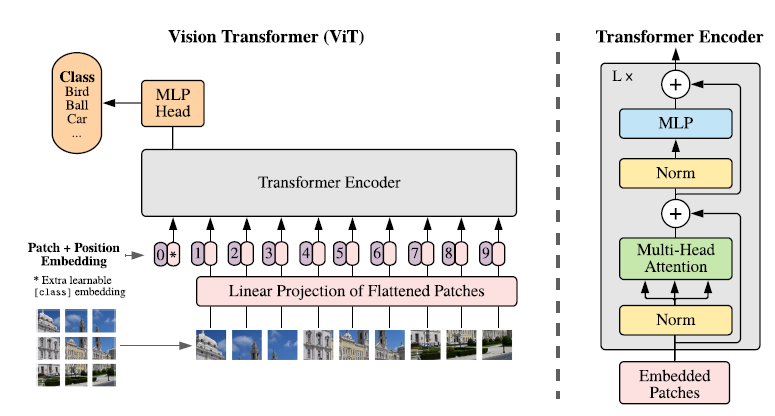 구조 자체는 BERT와 굉장히 유사하다. BERT에서도 [Class] Token을 따로 두고 classification에 사용했는데, ViT에서도 이를 따라가고 있다.